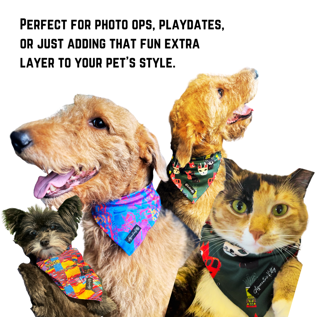 The best part? This bandanna doubles as a chic pocket square for you! Whether it’s worn by your pet or tucked in your pocket, the bold design adds extra flavor to any outfit.